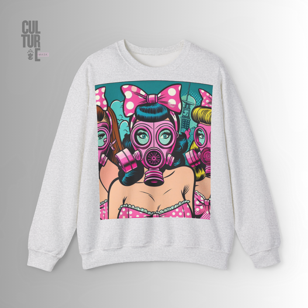 Suave, holgada y definitivamente divertida, esta sudadera de cuello redondo combina un estilo acogedor para el día a día con un toque pop art. Un brillante estampado retro de figuras con cintas y máscaras de gas